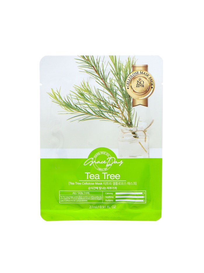Тканевая маска для лица помогает контролировать выработку себума, успокаивает и освежает. Масло чайного дерева поддерживает чистый и здоровый вид кожи, снимает раздражение. Маска из целлюлозы плотно прилегает к коже и дарит ощущение комфорта.