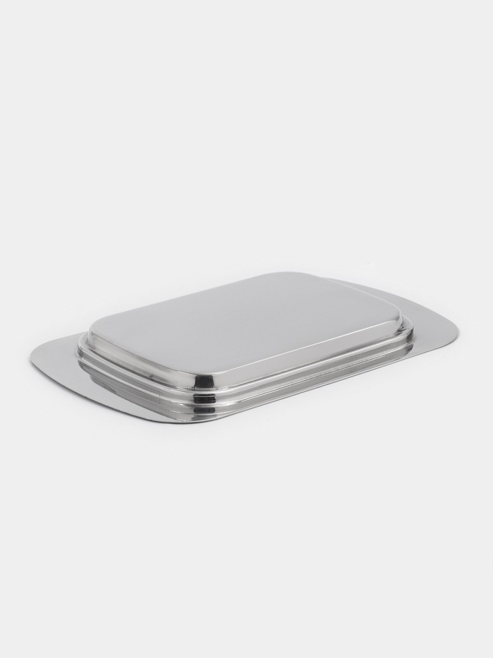 Удобная в использовании масленка может быть использована для хранения сливочного масла или сыра. Масленка с поддоном из коррозионностойкой стали не поддается ржавчине и сохранит продукты свежими, как в холодильнике, так и на обеденном столе. Крышка из стали защитит масло от загрязнений. Прекрасный классический дизайн впишется в любой кухонный интерьер.
