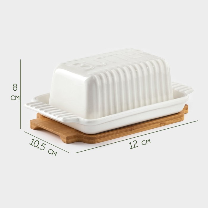 Маслёнка BellaTenero изготовлена из качественного фарфора. Подойдёт для хранения масла, сыра. Изделие защитит содержимое от посторонних запахов, пыли и преждевременного обветривания. Маслёнка рассчитана на ежедневное использование.