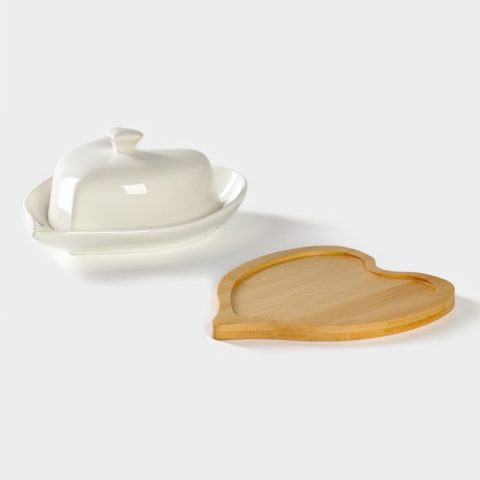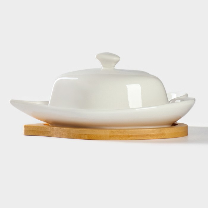 Масленка состоит из подноса и крышки, которая плотно прилегает к подносу, предотвращая преждевременное обветривание и впитывание посторонних запахов продуктов при хранении в холодильнике.