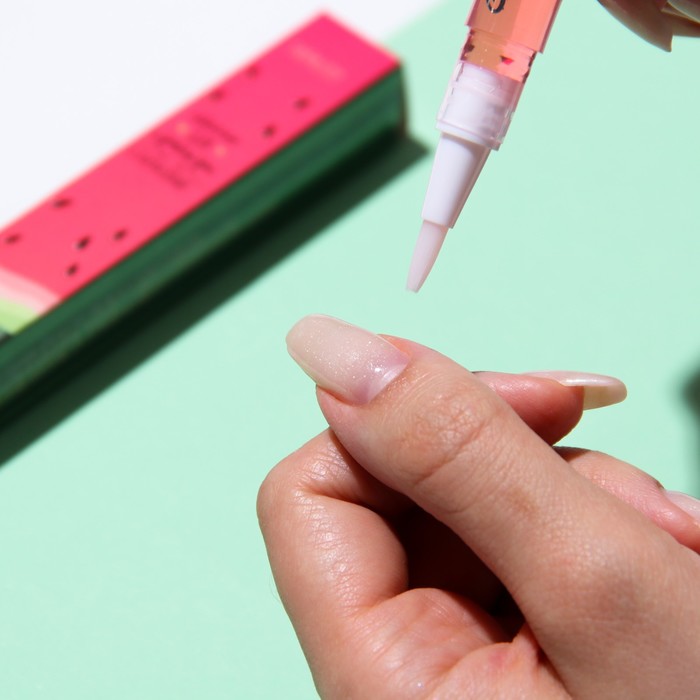 Способ применения: прокрутите основание несколько раз, пока масло не появится на кисточке. Распределите с её помощью средство по всей кутикуле. Подождите 2-3 минуты до впитывания средства. Вотрите остатки лёгкими массажными движениями.
