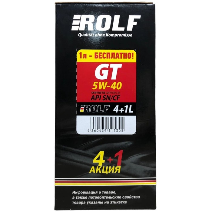 Высокотехнологичное масло нового поколения разработано для современных бензиновых и дизельных двигателей, включая моторы с турбонаддувом и системами непосредственного впрыска топлива. Формула соответствует строгим стандартам API SN/CF и обеспечивает всестороннюю защиту двигателя от износа, отложений и преждевременного старения даже в условиях интенсивной эксплуатации. Благодаря оптимальной вязкости 5W-40 продукт гарантирует лёгкий запуск мотора при низких температурах и стабильную работу при высоких нагрузках. Специальная акция - 4 литра + 1 литр бесплатно - обеспечивает дополнительную выгоду и экономию для владельцев автомобилей.
