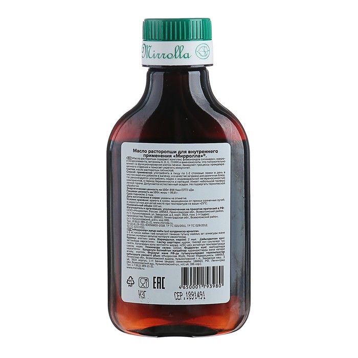 Масло расторопши пищевое "Мирролла". Нерафинированное. Масло первого холодного отжима. Масло расторопши богатейший источник кротиноидов, витаминов E, D, K и группы В, макро- и микроэлементов и биологически активных веществ. Ежедневное употребление в пищу масла расторопши 1-2 столовые ложки, как в чистом виде, так и в различных блюдах, способствует повышению иммунитета и оздоровлению печени.