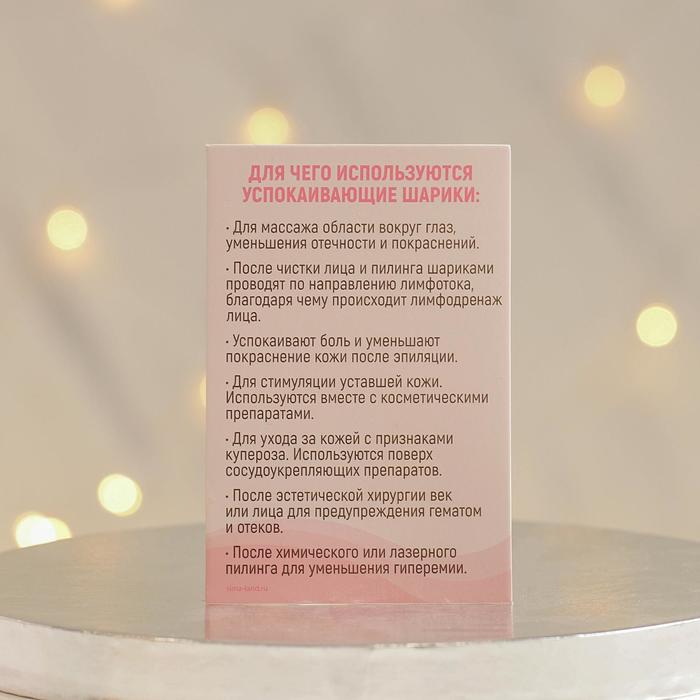 Сохраните надолго свою молодость и красоту - используйте охлаждающие ледяные шарики для эффективного массажа лица и шеи. Стеклянные шарики выполнены из термостойкого лабораторного стекла, что позволяет их за 20-30 минут охлаждать до +5 , +10 градусов. Криосферы используются для массажа лица, шеи и области декольте, незначительное охлаждение благоприятно влияет на циркуляцию крови и улучшает питание клеток. Применение охлаждающего массажера дает заметный лифтинговый эффект, помогает разгладить мелкие морщины, убрать выраженные отеки и круги под глазами. Конструкция массажера позволяет использовать его вместе с массажными и косметическими маслами.
