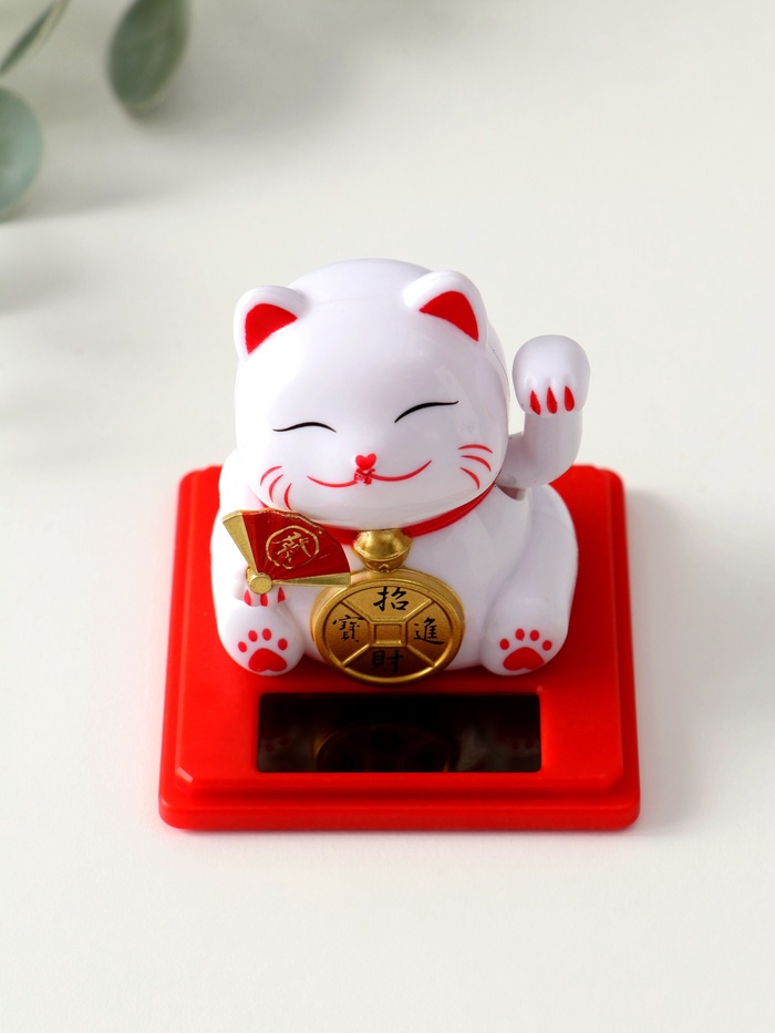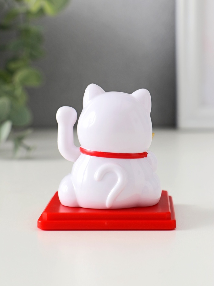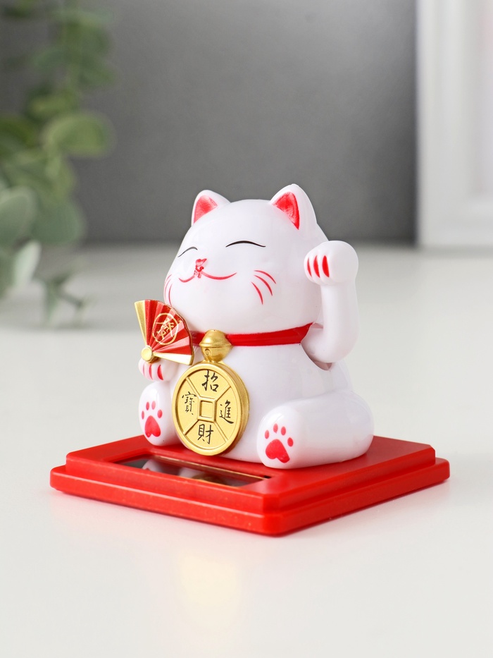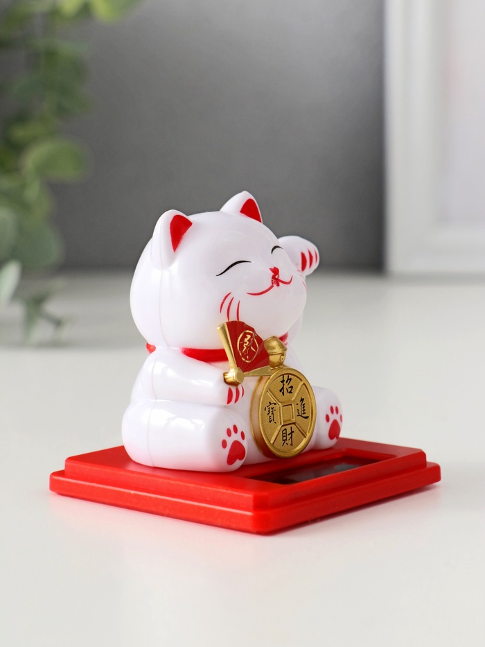 Маятник настольный антистресс «Белый Манэки-нэко с веером и монеткой», пластик, 5×5×5 см