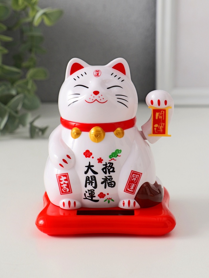 Маятник настольный антистресс «Кот Манэки-нэко спящий», пластик, от солнечной батареи, белый, 9.5×10×9.5 см