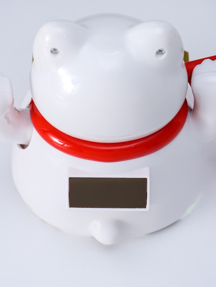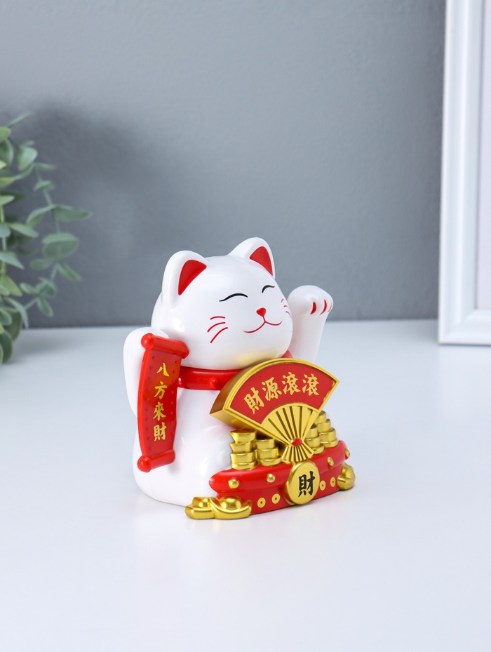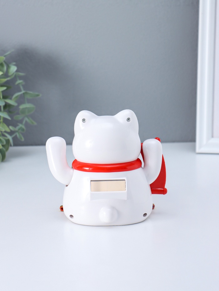 Маятник настольный антистресс от солнечной батареи «Белый кот Манэки-нэко с веером», 11.2×14.3×15.3 см