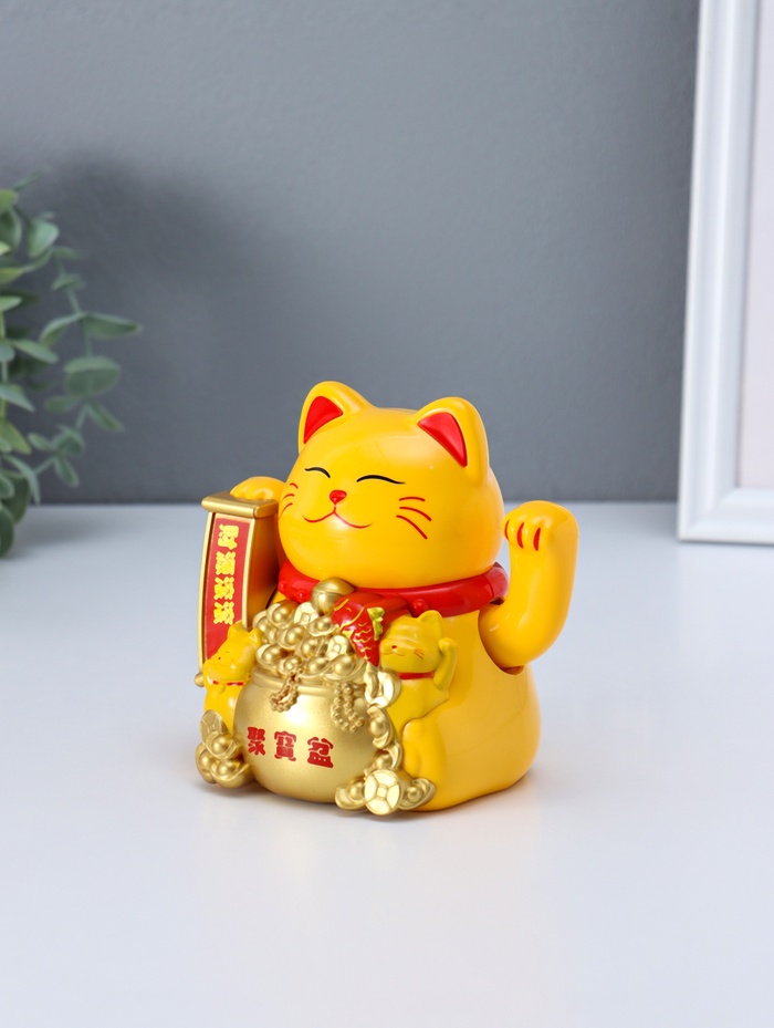 Маятник настольный антистресс от солнечной батареи «Золотой кот Манэки-нэко с домиком», 11.2×14.3×15.3 см