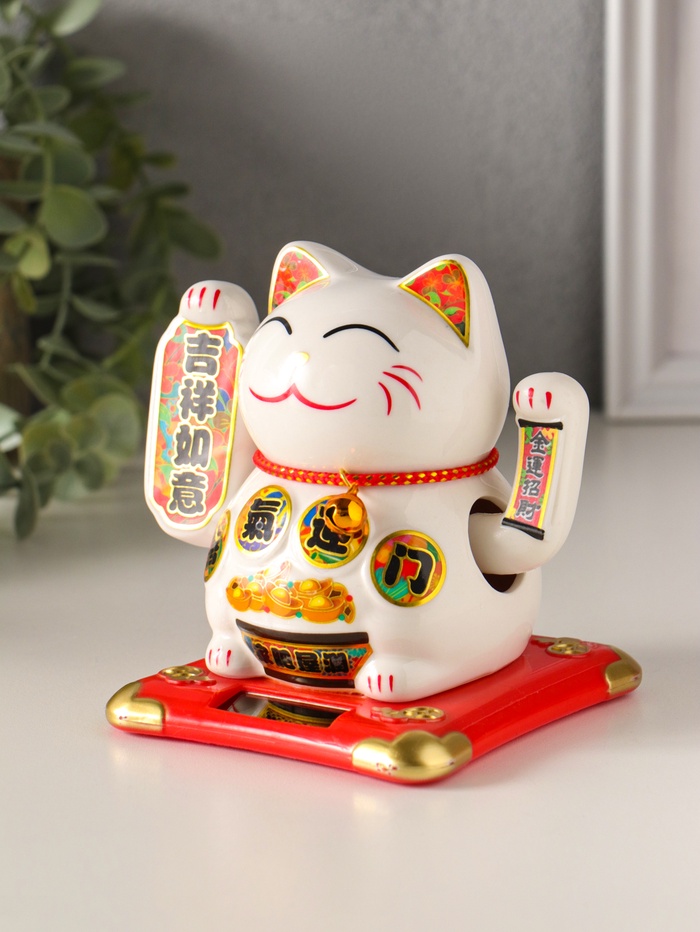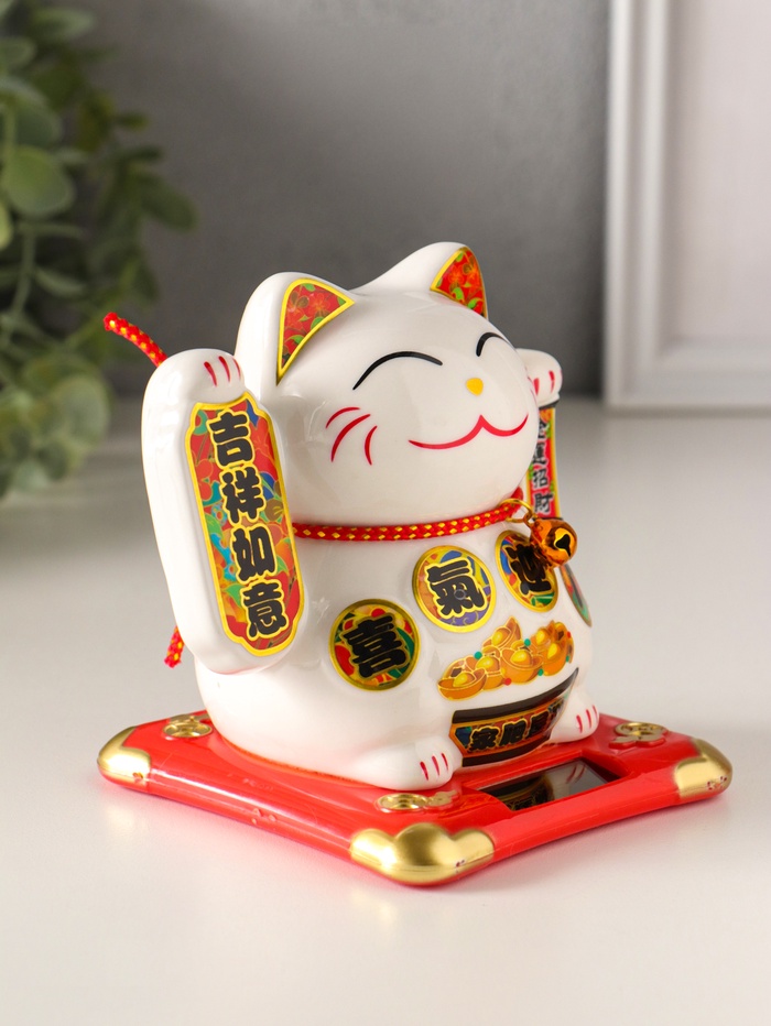 Маятник настольный антистресс от солнечной батареи «Манэки-нэко с золотыми слитками», керамика, 10×11×10.8 см