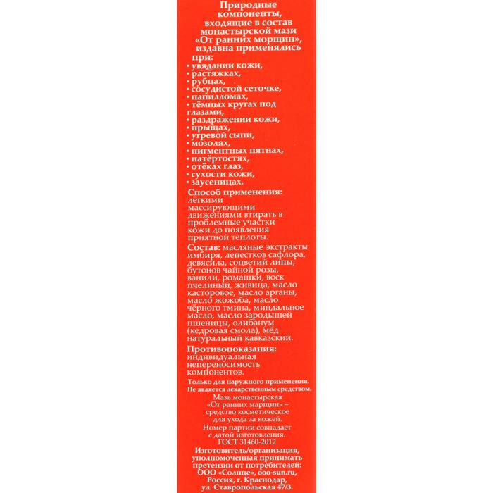 Способ применения: лёгкими массирующими движениями втирать в кожу на проблемном участке до ощущения тепла.