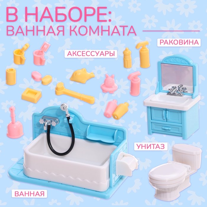 Представляем вашему вниманию набор мебели для ванной комнаты из популярной серии «Крошики. Уютный дом». Этот набор позволит создать уютный и функциональный уголок для игр вашей малышки. В комплекте вы найдёте все необходимое для проведения водных процедур.