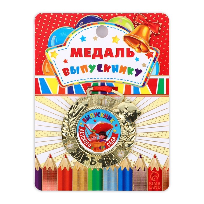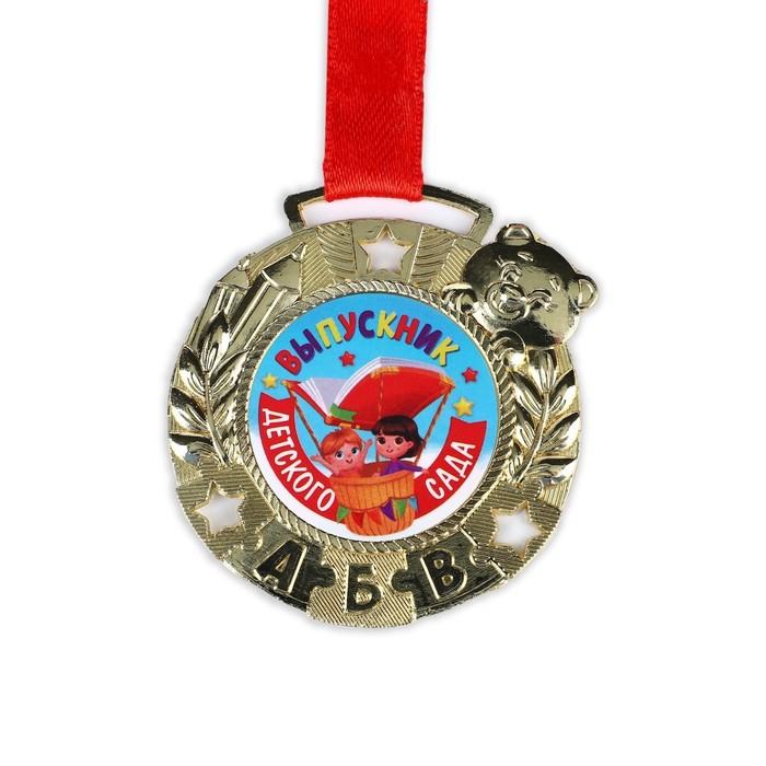 Медаль детская на Выпускной «Выпускник детского сада», на ленте, золото, металл, d = 5,5 см