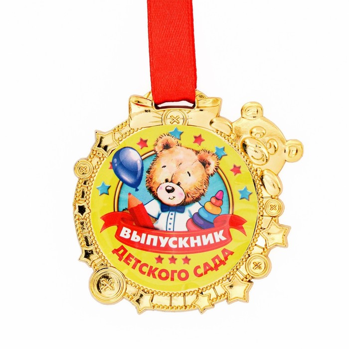 Медаль детская на Выпускной «Выпускник детского сада», на ленте, золото, пластик, d = 6,9 см