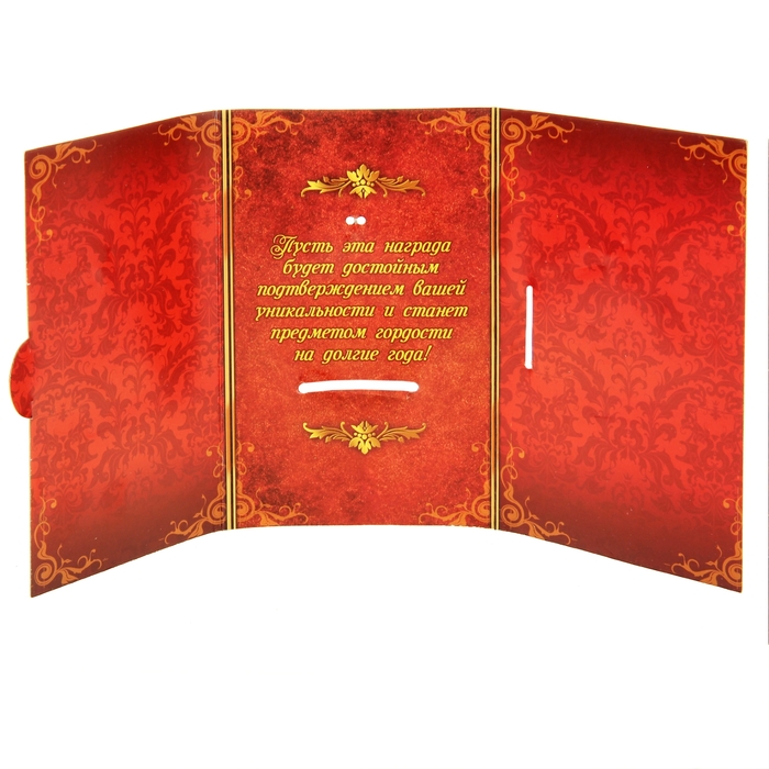 Медаль в подарочной открытке изготовлена из золотистого металла, идет в комплекте с лентой, упакована в открытку с торжественным приветствием для адресата. Удивляйте и награждайте!