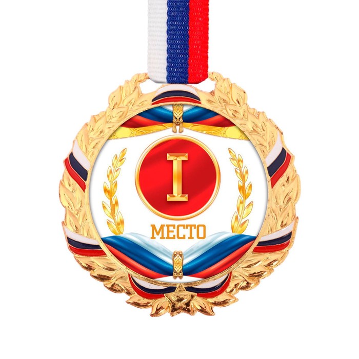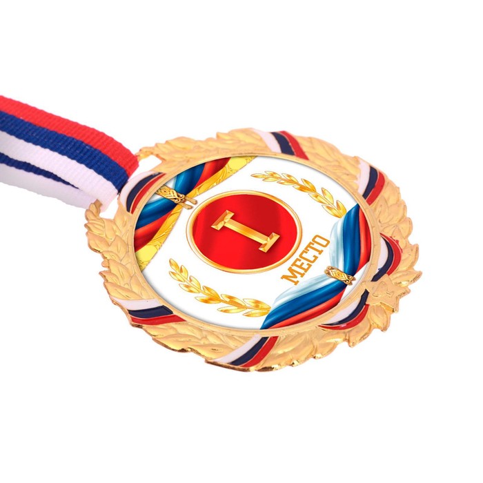 Медаль призовая 078, d= 7 см. 1 место. Цвет золото. С лентой