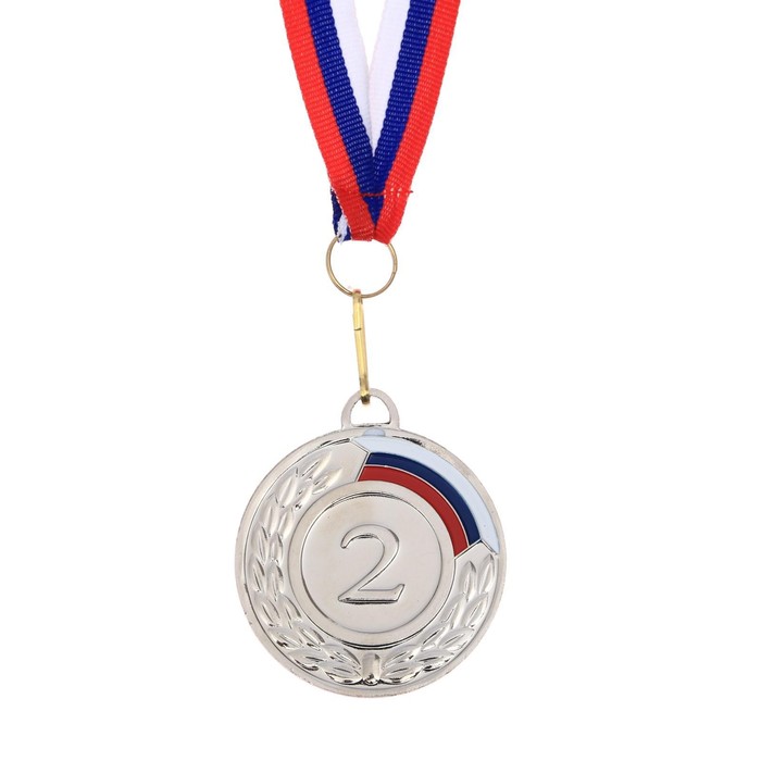 Медаль призовая серебро 002, d=5 см, 2 место, с лентой