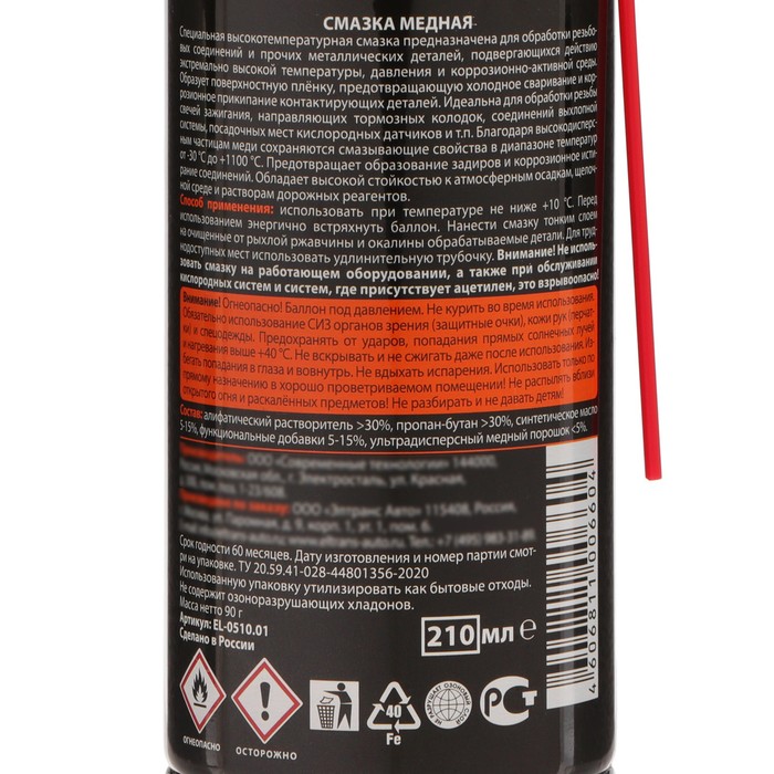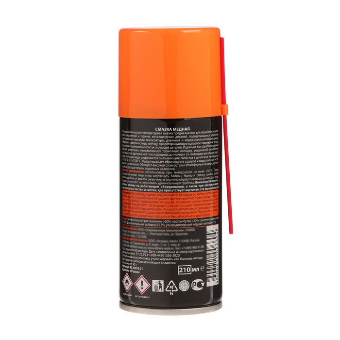 Медная смазка ELTRANS аэрозоль, 210 мл EL-0510.01 используется для обработки резьбовых соединений и деталей, подвергающихся экстремальным температурам и давлению.
