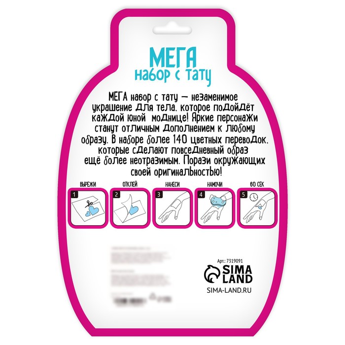 Меганабор с тату — эффектное украшение для тела, которое подойдёт каждой юной моднице! Яркие персонажи станут отличным дополнением к любому образу.