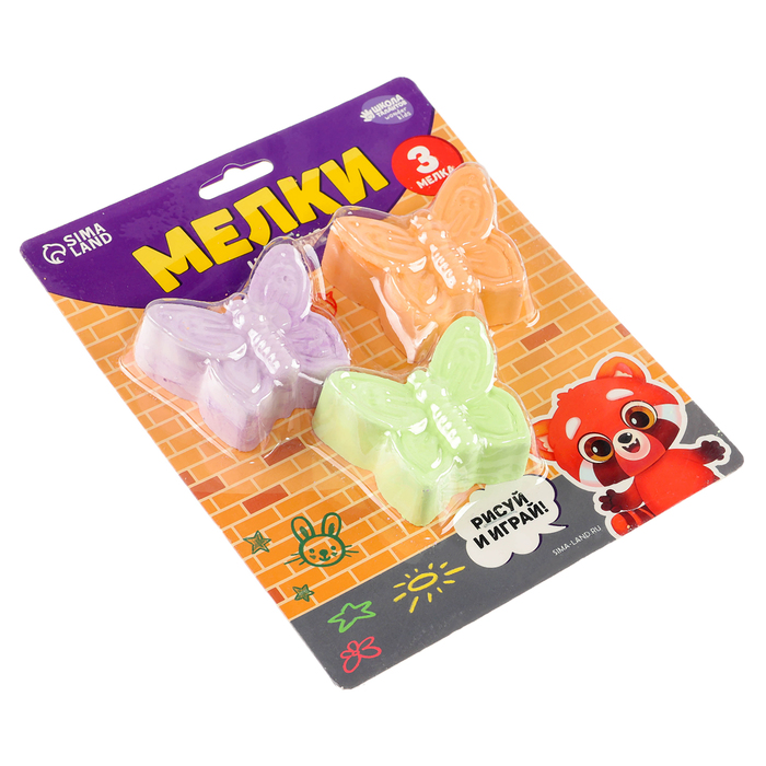 Мелки цветные для рисования на асфальте «Бабочка», 3 шт