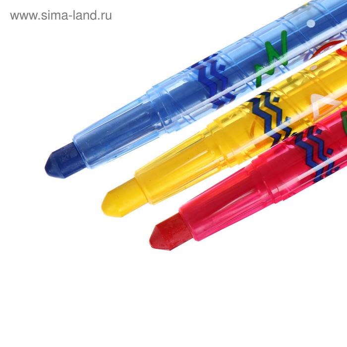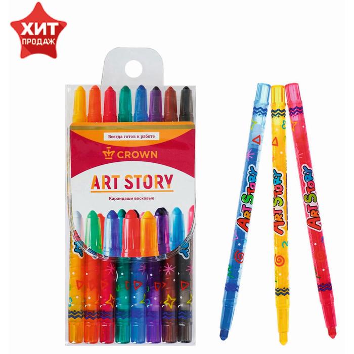 Набор ярких восковых карандашей Crown "ArtStory" с выкручивающимся стержнем отличаются яркостью и стойкостью цвета, легко смешиваются, создавая огромное количество оттенков. Благодаря выкручивающемуся механизму восковые карандаши не пачкают руки, не крошатся, не ломаются, не образуют пыли и не нуждаются в затачивании! Цветные мелки круглой формы не требуют сильного нажатия, мягко рисуют на бумаге, картоне и любой шероховатой поверхности.