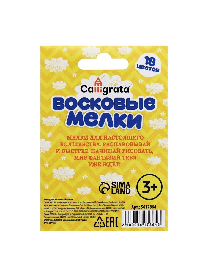 Рисование восковыми мелками способствует развитию мелкой моторики рук, воображения и помогает формировать цветовое восприятие. Длина карандашей 93 мм, диаметр 8 мм. Идеальны для рисования на бумаге любого типа, а также дереве, картоне и стекле. Детские восковые карандаши обладают повышенной мягкостью, так как в новой формуле содержится увеличенное количество пчелиного воска. Детские восковые мелки для рисования не пачкают руки - цветные карандаши идут в индивидуальной бумажной обертке, которые также не дают ручке скользить. Набор восковых цветных карандашей легко затачиваются и стираются ластиком.
