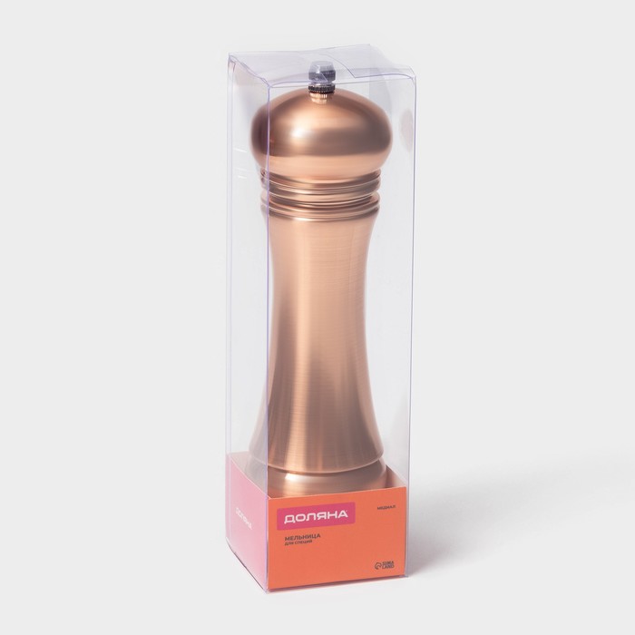 Добавьте изюминку в вашу кухню с помощью этой стильной мельницы для специй! Её утонченный медный цвет и фигуристый дизайн превращают её в настоящее украшение стола. Мельница имеет прочный корпус и керамический механизм, который обеспечивает равномерный помол и сохраняет аромат специй. С помощью этой мельницы вы с легкостью сможете приготовить вкуснейшие блюда с свежемолотыми специями. Стильный дизайн: Мельница отлично впишется в любой интерьер и придаст вашей кухне изящный вид. Качество и долговечность: Прочный корпус и керамический механизм гарантируют продолжительный срок службы мельницы. Удобство в использовании: Компактный размер (22 см) позволяет хранить мельницу на любой поверхности. Свежемолотые специи: Раскройте полный аромат и вкус любимых специй с помощью этой мельницы. Сделайте вашу кулинарию более вкусной и красивой с помощью мельницы для специй «Медиал»!