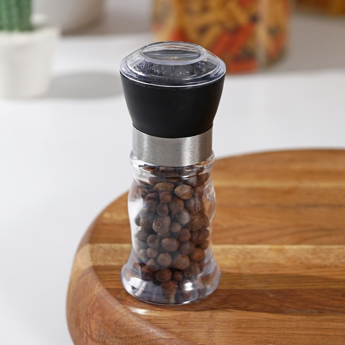 Мельница для специй Доляна «Рэйн», 12×5 см, керамический механизм, прозрачная — изящный и практичный аксессуар для каждого увлечённого кулинара.