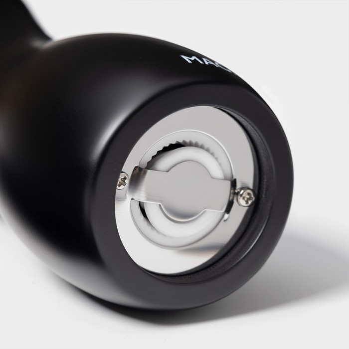 Мельница оснащена керамическим механизмом, который обеспечивает равномерный помол и сохраняет аромат специй. Благодаря регулировочному винту вы можете контролировать степень помола, делая его более грубым или мелким.