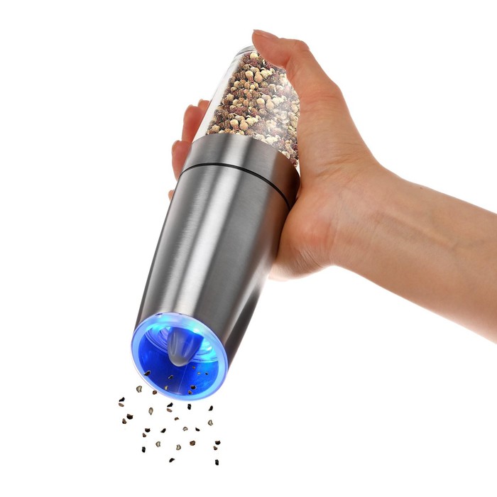Помол специй осуществляется автоматически при переворачивании, сопровождается подсветкой. Благодаря прозрачным стенкам вы можете проконтролировать процесс помола специй.
