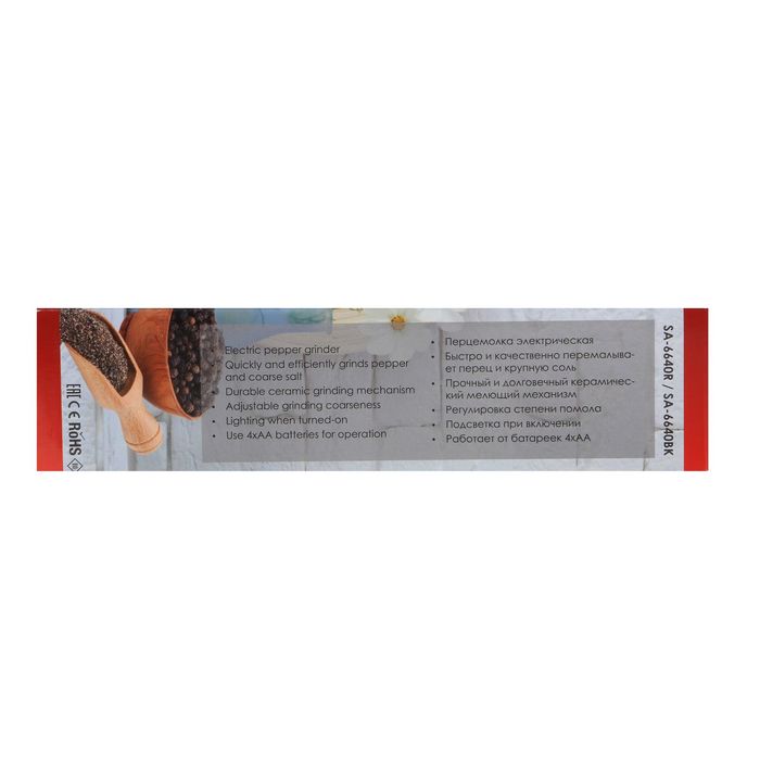 Быстро перемолоть перец и специи — простая задача для электрической мельницы Sakura SA-6640BK. Долговечный и прочный керамический механизм, регулировка степени помола, подсветка при включении порадуют и сэкономят время для приятных моментов жизни.