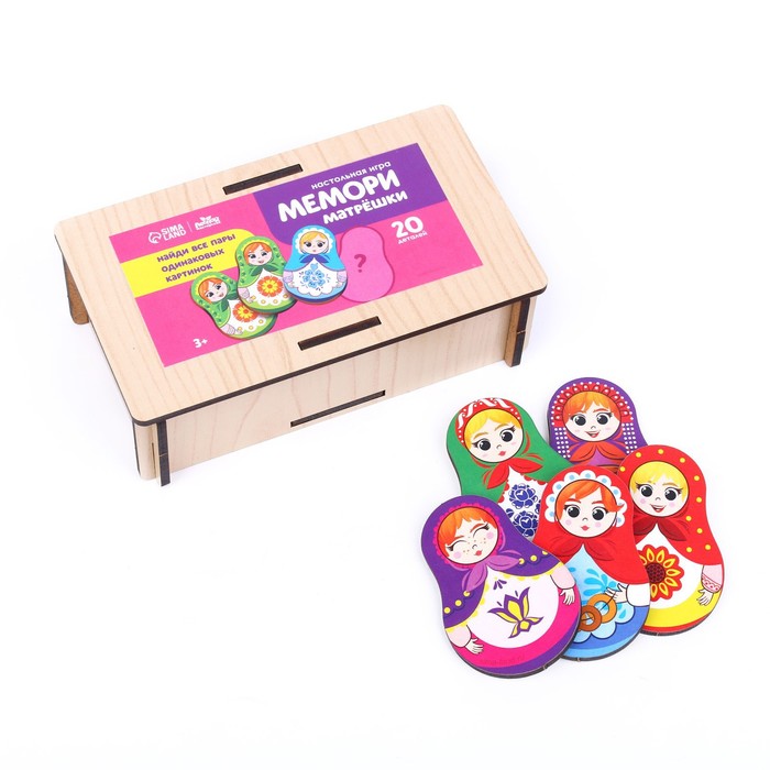 Деревянная игра «Мемори: Матрёшки» — это увлекательная развивающая игра для детей от 3 лет, которая помогает тренировать память, внимание и логическое мышление. В набор входит 20 деревянных фигурок с изображениями матрёшек, которые нужно собирать в пары. Игра подходит для 1–4 игроков и станет отличным подарком для малышей.