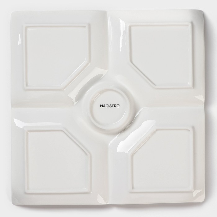 Менажница впишется в интерьер любой кухни и позволит интересно сервировать стол. Тарелка для закусок подойдёт для проведения вечеринок или домашних посиделок с близкими. Стильная посуда имеет несколько ячеек, в каждую из которых можно положить нарезку сыра, фрукты, мясные деликатесы, орехи, конфеты и прочие продукты.