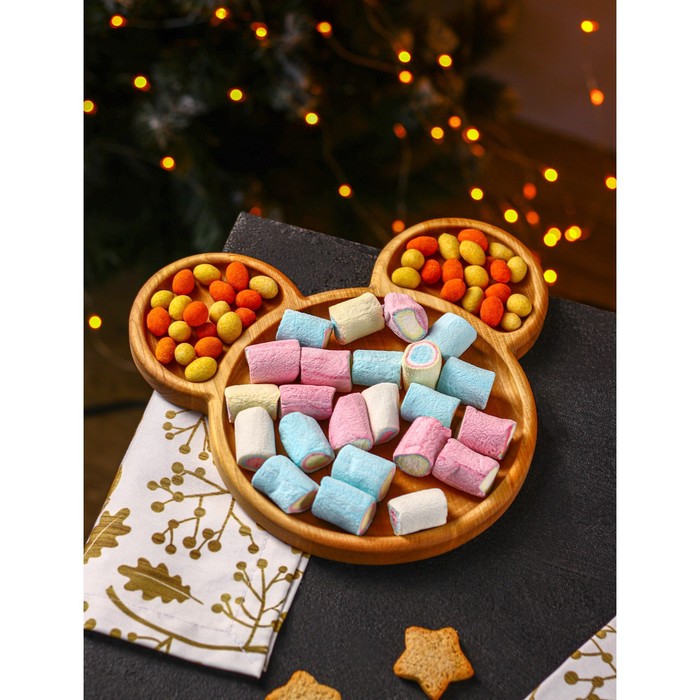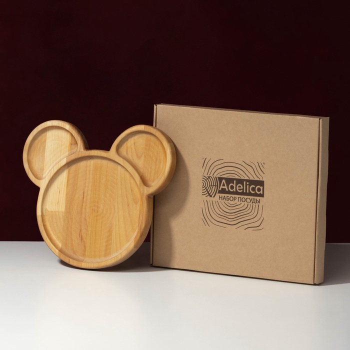 Менажница Adelica «Микки», 3 секции, 25×23×1,8 см, пропитана минеральным маслом, в подарочной коробке, берёза