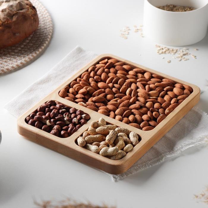 Никак не можете отучить себя от вредных перекусов? Изящная менажница из натурального дерева не даст вам пройти мимо орешков и сухофруктов. Изделие станет стильным и уютным элементом вашей кухни и незаменимым аксессуаром для сервировки стола.