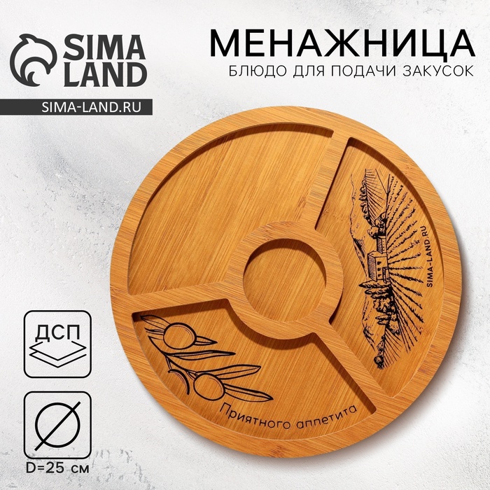 Менажница для закусок создаст идеальную атмосферу для ваших гостей и близких. Этот сервировочный аксессуар станет неотъемлемой частью вашего стола, придавая ему особый шарм и функциональность. Прочная и устойчивая, она выдерживает ежедневное использование и легко очищается, не впитывает запахи. Также менажница для закусок станет прекрасным подарком для ваших близких, друзей или коллег.