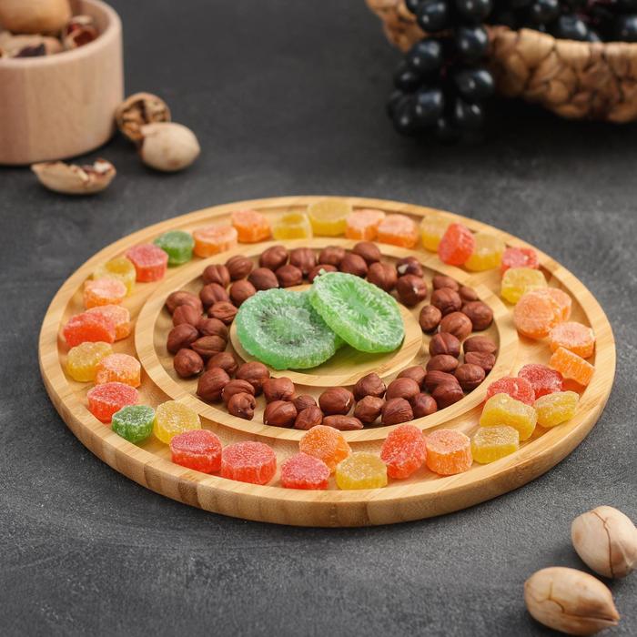 Никак не можете отучить себя от вредных перекусов? Изящная менажница из натурального дерева не даст вам пройти мимо орешков и сухофруктов. Изделие станет стильным и уютным элементом вашей кухни и незаменимым аксессуаром для сервировки стола.