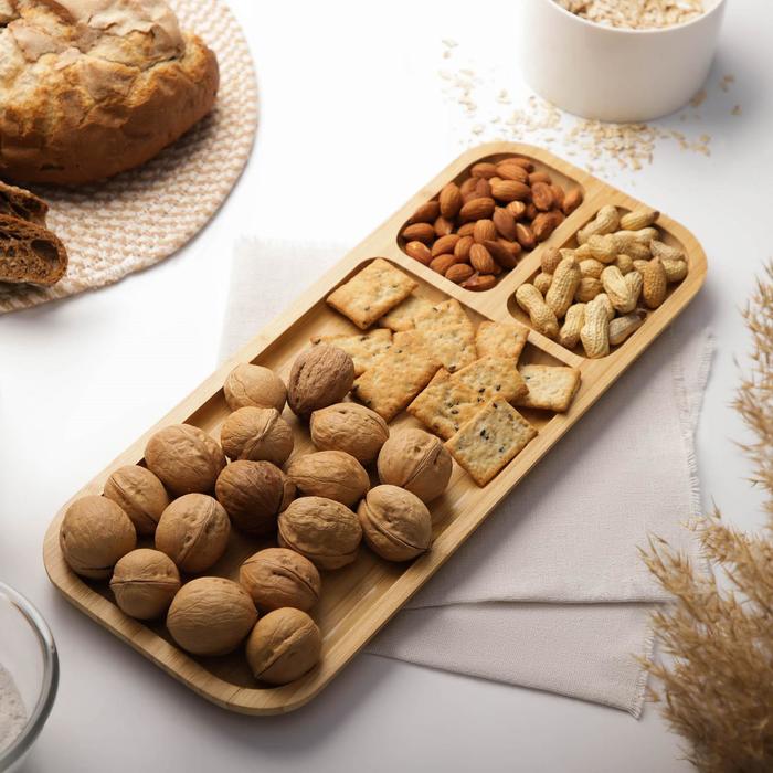 Никак не можете отучить себя от вредных перекусов? Изящная менажница из натурального дерева не даст вам пройти мимо орешков и сухофруктов. Изделие станет стильным и уютным элементом вашей кухни и незаменимым аксессуаром для сервировки стола.