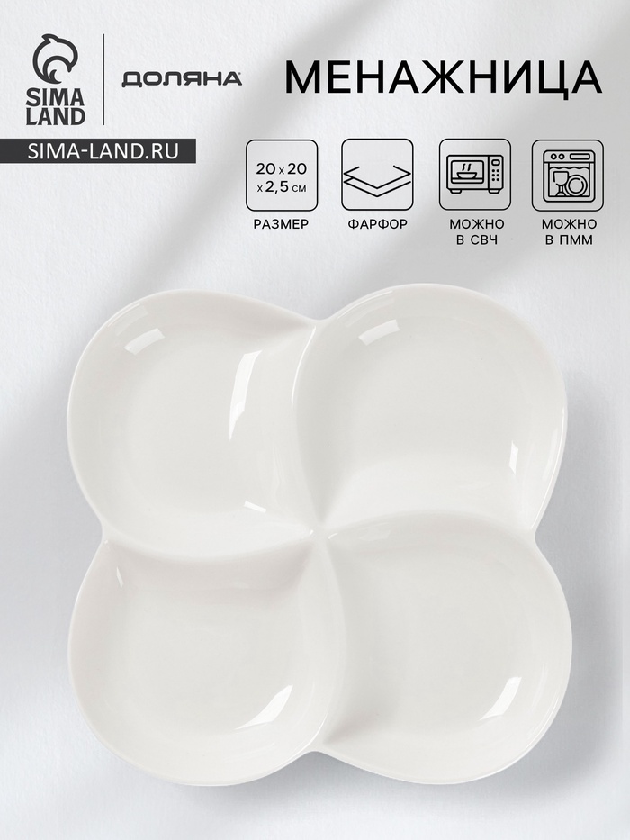 Компактная фарфоровая менажница "White Label": Стильное решение для небольших закусок!