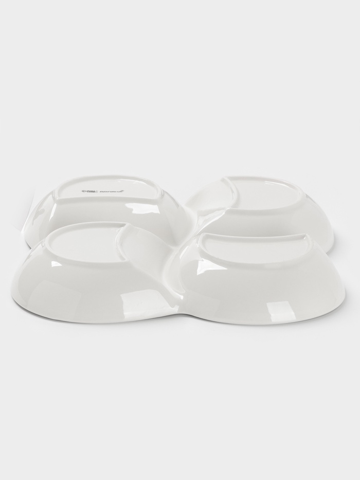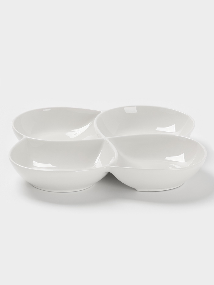 Менажница "White Label" идеально подходит для подачи оливок, соусов, орехов, сыров и других небольших угощений. Фигурная форма придает ей особый шарм и делает центром внимания на столе. Фарфор высокого качества обеспечивает долговечность и легкий уход - менажницу можно без труда мыть в посудомоечной машине.