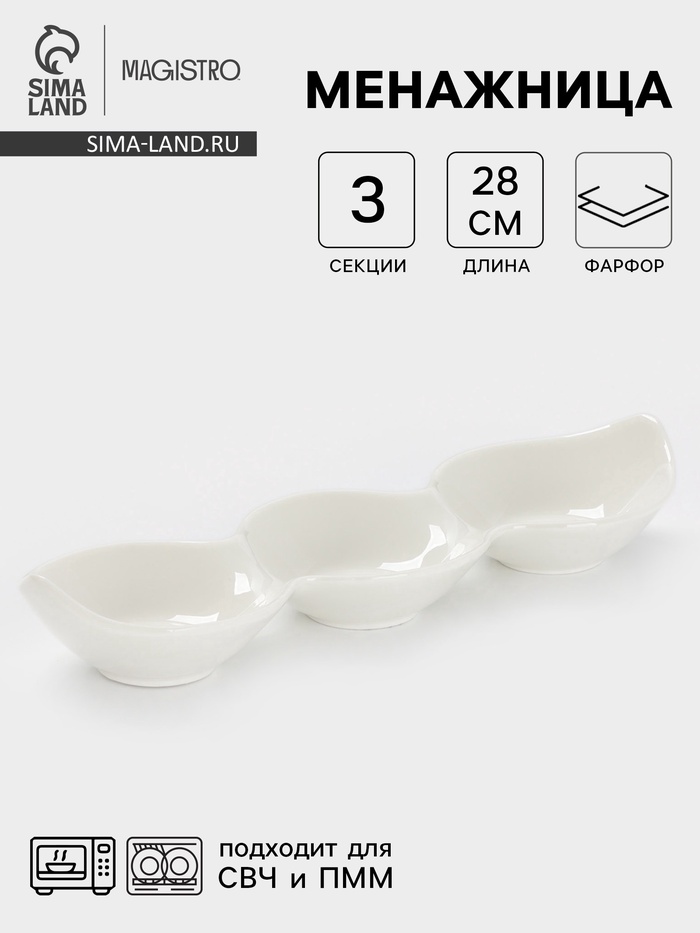 Менажница впишется в интерьер любой кухни и позволит интересно сервировать стол. Тарелка для закусок подойдёт для проведения вечеринок или домашних посиделок с близкими. Стильная посуда имеет несколько ячеек, в каждую из которых можно положить нарезку сыра, фрукты, мясные деликатесы, орехи, конфеты и прочие продукты.