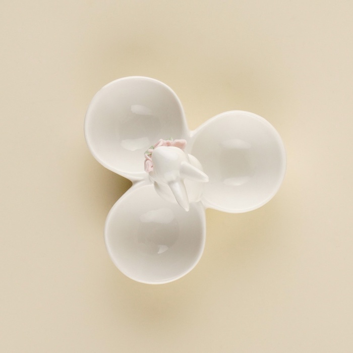 Погрузитесь в атмосферу уюта и стиля с изысканной менажницей «Кролик», которая станет настоящим украшением вашего стола. Эта фигурная посуда, выполненная из высококачественного фарфора, не только привлекает внимание своим милым дизайном, но и предлагает удобство в использовании благодаря трем ячейкам объемом 30 мл каждая.