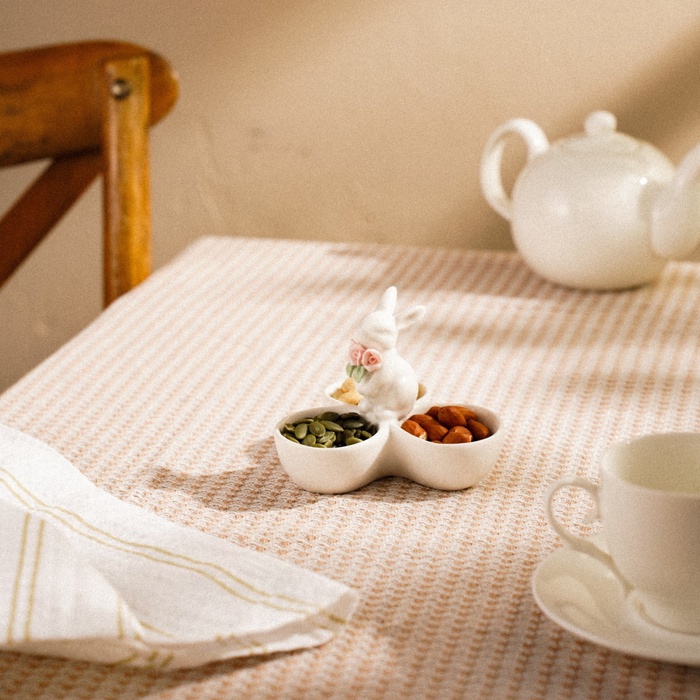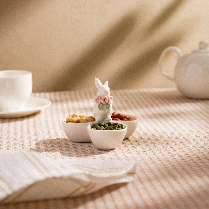 - Непревзойденный дизайн: очаровательный кролик в центре менажницы привносит элемент игривости и радости в каждое застолье.