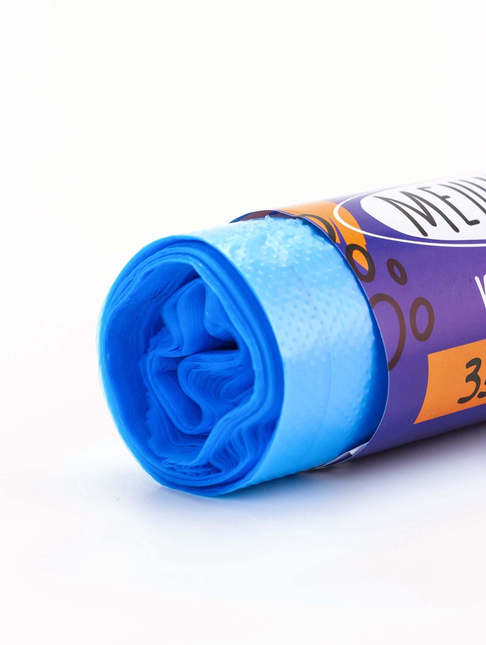 - Функциональный синий цвет: Оттенок помогает визуально отделить эти мешки для особых типов отходов. Цвет равномерно распределен по всей поверхности.