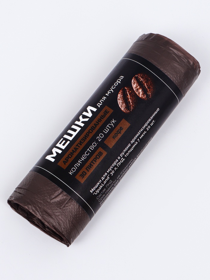 Ароматизированные мешки для мусора с запахом кофе, коричневые (30 л, 20 шт.) – практичное решение для сбора бытовых отходов с приятным дополнительным эффектом. Специальный аромат кофе нейтрализует неприятные запахи, оставляя в помещении свежесть. Изготовлены из полиэтилена низкого давления (ПНД) толщиной 7 мкм, обеспечивающего достаточную прочность для повседневного использования.