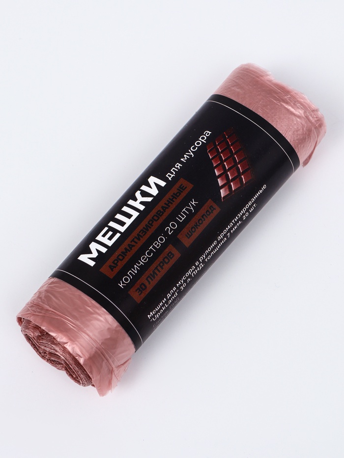Ароматизированные мешки для мусора с запахом шоколада, коричневые (30 л, 20 шт.) – практичное решение для сбора бытовых отходов с приятным дополнительным эффектом. Специальный аромат шоколада нейтрализует неприятные запахи, оставляя в помещении сладковатую свежесть. Изготовлены из полиэтилена низкого давления (ПНД) толщиной 7 мкм, обеспечивающего достаточную прочность для повседневного использования.