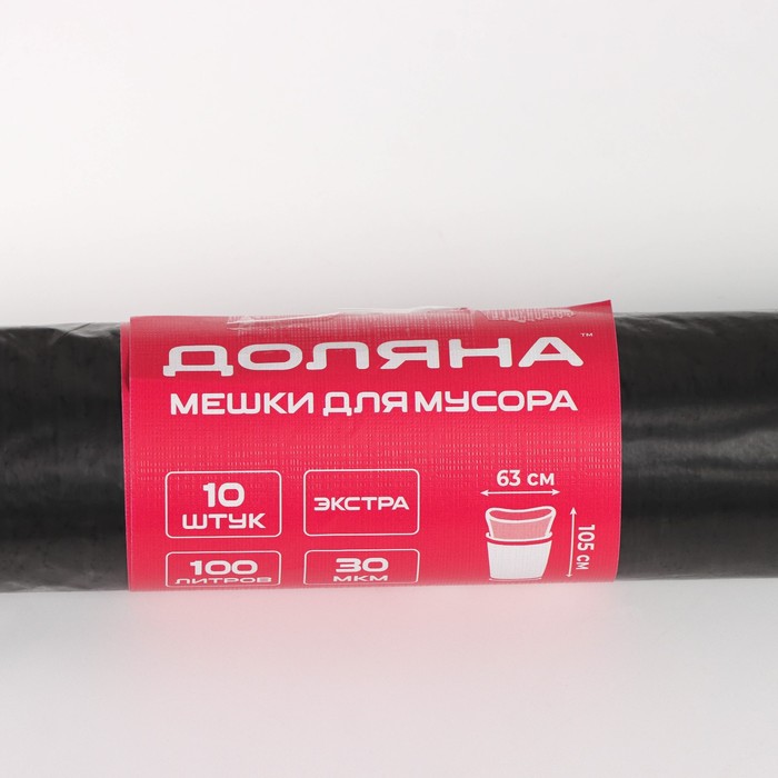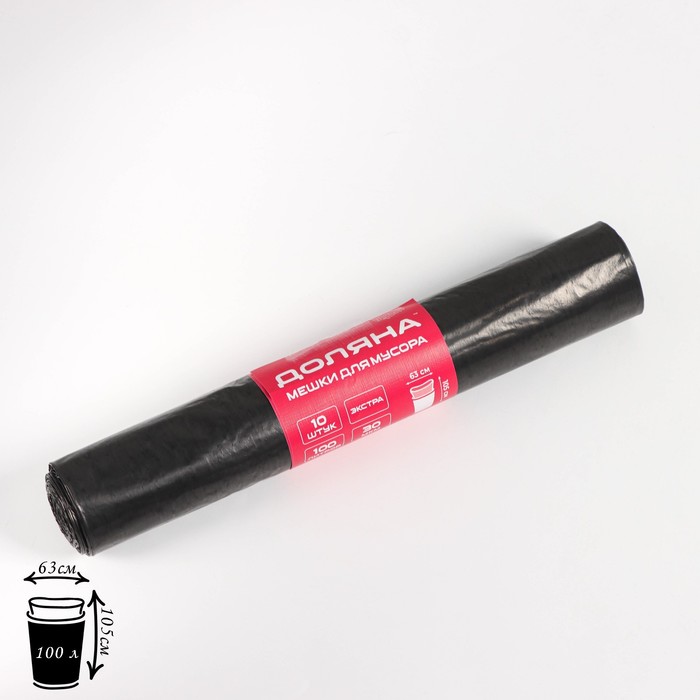 Мешки для мусора Доляна «Экстра», 100 л, 63×105 см, 30 мкм, ПВД, 10 шт., черные