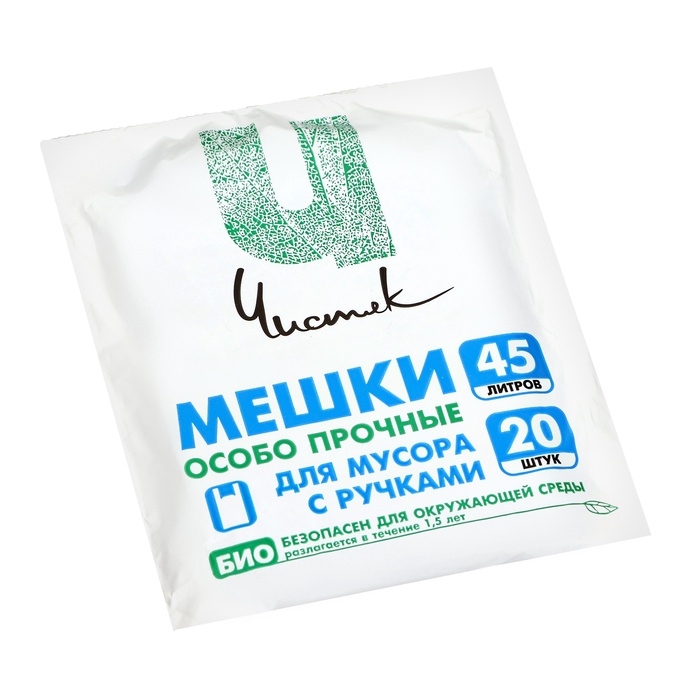 Мешки для мусора с ручками 45 л, «Чистяк», ПНД, 15 мкм, набор 20 шт, 32 х 22 х 64 см