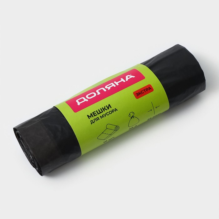 Мешки для мусора с завязками Доляна «Экстра», 30 л, 25 мкм, 50×60 см, ПВД, 10 шт, чёрные
