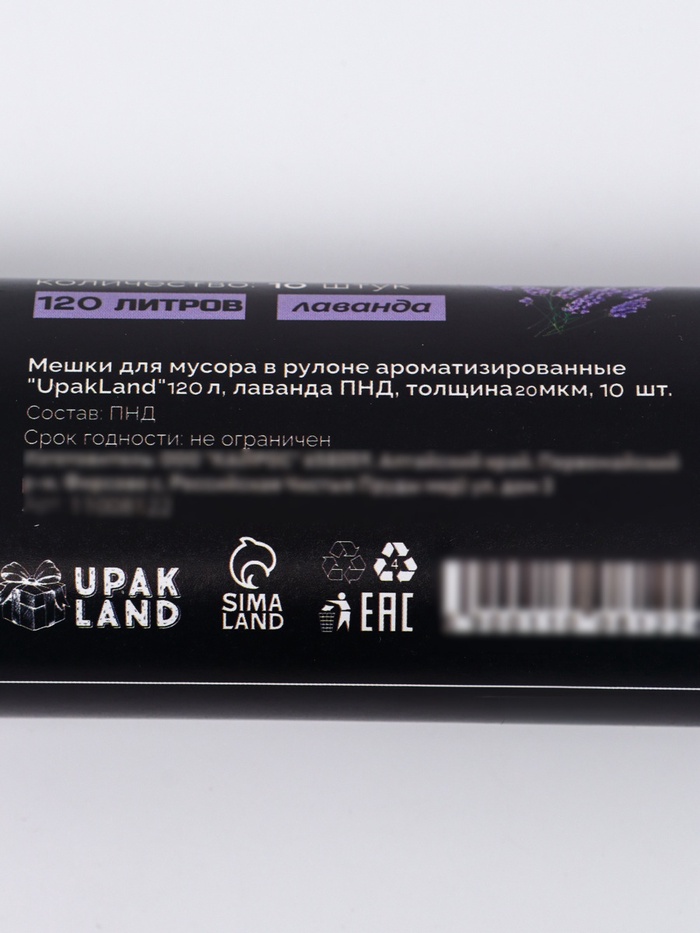 Ароматизированные мешки для мусора в рулоне с запахом лаванды, сиреневые (120 л, 10 шт.) – прочное и вместительное решение для крупных объемов отходов с приятным дополнительным эффектом. Специальный нежный цветочный аромат лаванды нейтрализует неприятные запахи, оставляя в помещении ощущение свежести и спокойствия. Изготовлены из полиэтилена низкого давления (ПНД) толщиной 20 мкм, обеспечивающего повышенную прочность и устойчивость к разрывам. Удобная упаковка в рулоне упрощает хранение и извлечение.