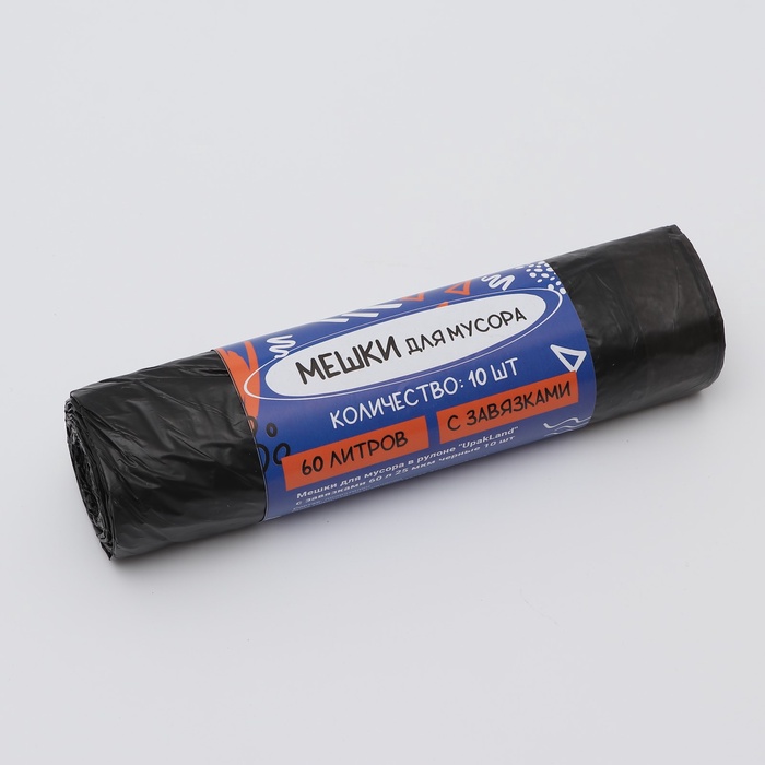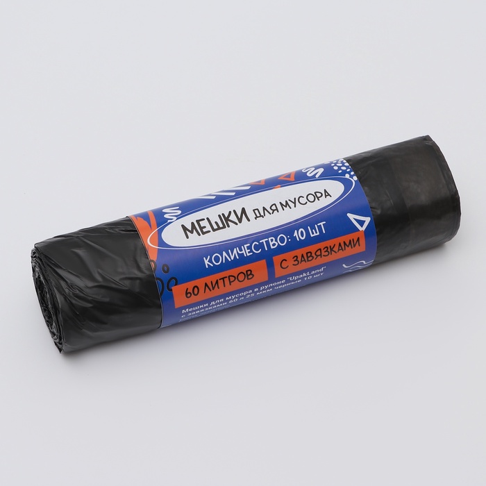 Мешки для мусора в рулоне UpakLand с завязками 60 л 25 мкм черные 10 шт.